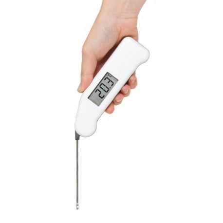 - Ruostumatonta terästä oleva ohennettu mittapää (Ø3.3 x 95 mm), joka antaa tarkan lukeman vain kolmessa sekunnissa